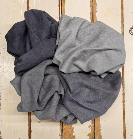 Our Hand Dyed Wools all start out as 1/2 yard pieces, which are dyed in small batches right in our shop using all of our own original recipes. This means the mottling will vary from piece to piece, but the tones will remain the same.