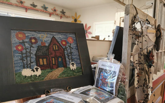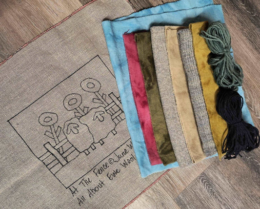 Our kits all use Hand Dyed Wool Fabric or Wool Yarn from Briggs & Little that we hand dyed right here in our shop. We also use high quality Linen for all of our patterns which accommodates our 2 & 3 Ply Wool Yarn & Wool Fabric Strip Sizes 3 to 12 - we even use 1/2" ripped strips with it perfectly, too!