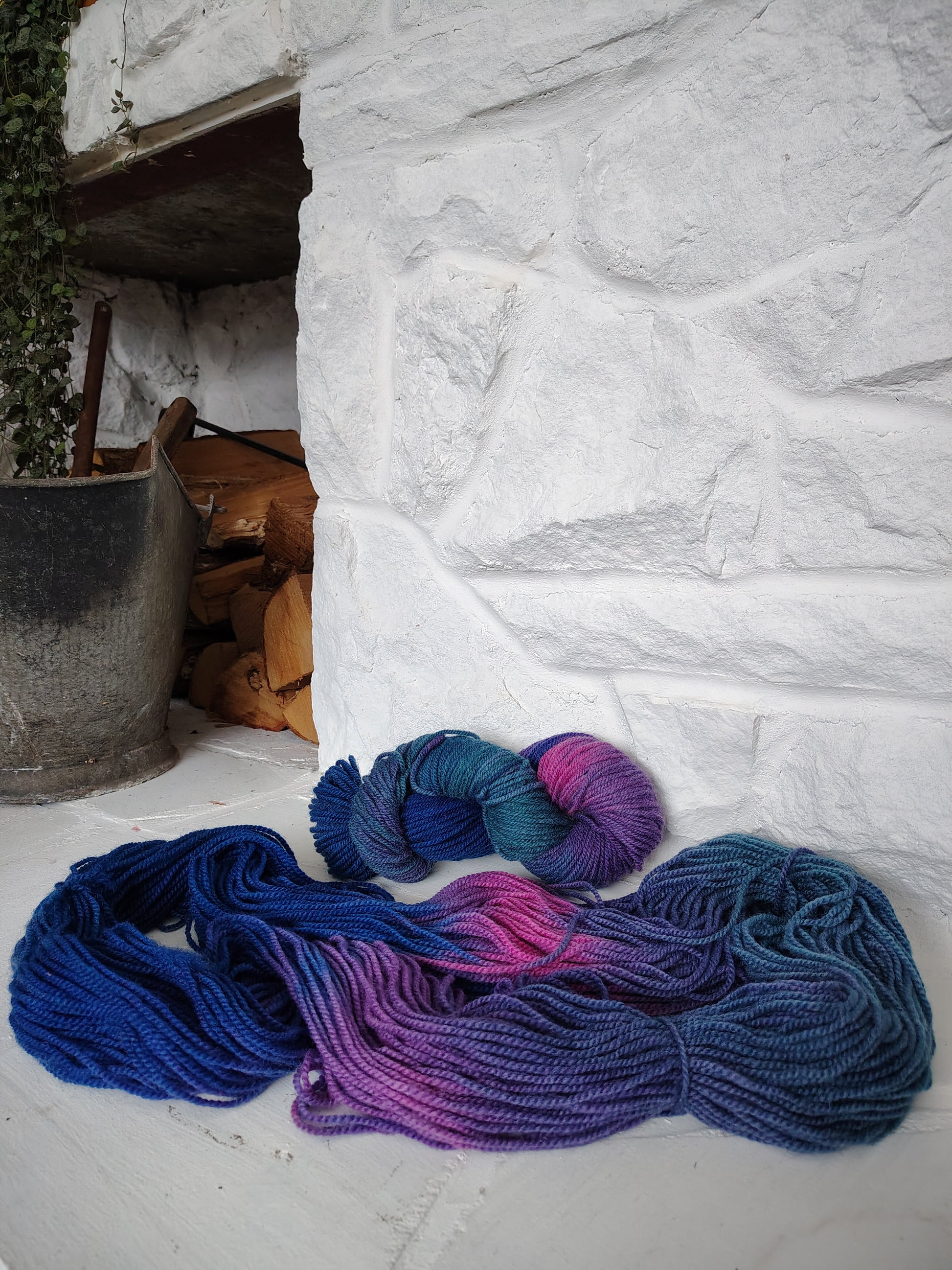 This listing is for one skein of our Hand Dyed Wool Yarn.