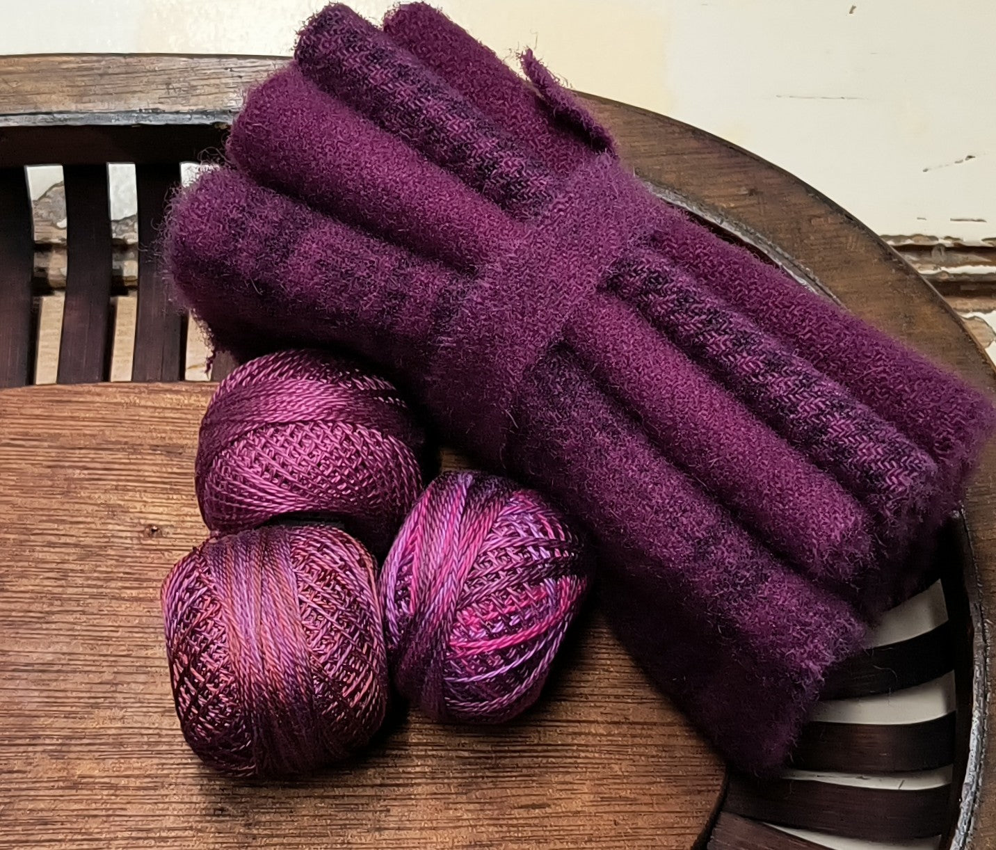 Choice of Wool Bundle only, or you can add 3 Valdani Pearl Cotton Threads to your Wool Bundle. Threads may vary from exact threads shown depending on our inventory, but will always be beautifully coordinated with the Wool Bundle you have selected. If you have a preference in size of thread (size 5, 8 or 12), please indicate that in the "Order Special Instructions" field when viewing your cart. You can also shop all of our Valdani Pearl Cotton Threads here.